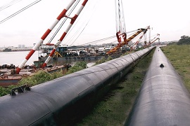中壓管線(xiàn)穿越老減河段燃氣管線(xiàn)工作壓力 0.25MPa ,設計壓力 0.4MPa ,工作環(huán)境溫度-20℃<t<30℃,輸送介質(zhì)為 天然氣。穿越段采用 PE100 SDR11.0 級,De315 聚乙烯管,穿越段管道水 平投影長(cháng)度 732.5m。根據《海河流域綜合規劃》 (2013.03) 和《漳衛河系防洪規劃》 (2008.02) ,中壓管線(xiàn)穿越處老減河排澇標準為 3 年一遇,防洪標準為50 年一遇。