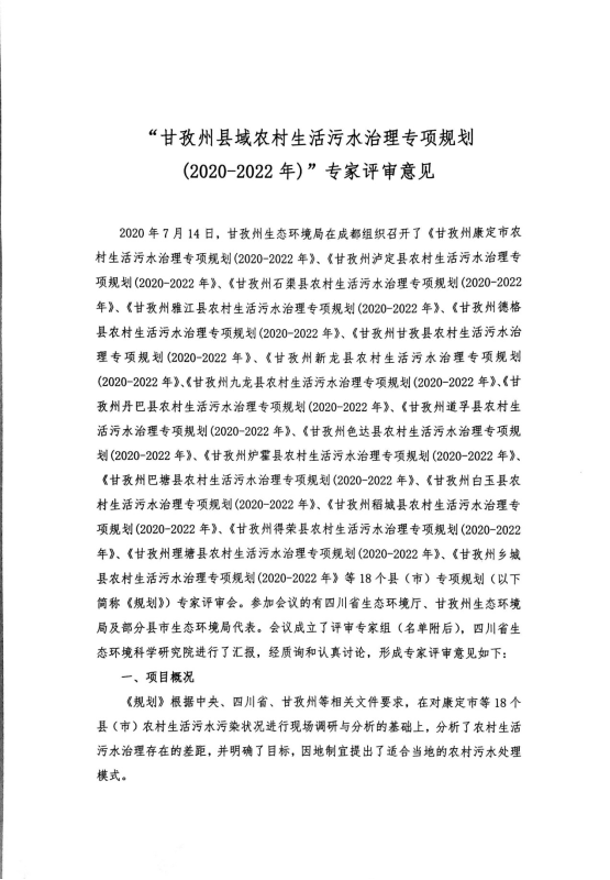 甘孜州雅江縣農村生活污水治理專(zhuān)項規劃(2020~2022年)