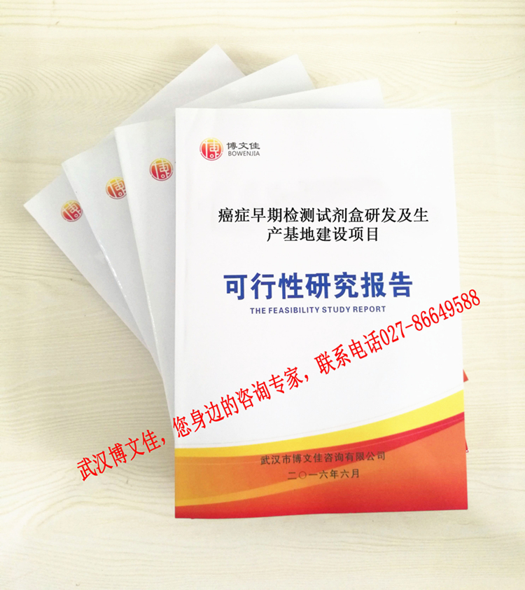 本項目總用地面積200畝,總建筑面積為73450平方米,按照設施現代化、硬件智能化、管理信息化、操作規范化的要求,建設成“四中心三區”的理念?!八闹行摹狈謩e為:研發(fā)質(zhì)檢中心、生產(chǎn)中心、行政中心、能源動(dòng)力中心;“三區”分別為:集中倉儲區、企業(yè)文化展示區、綜合配合配套服務(wù)區。項目總投資20000.0萬(wàn)元,其中建設投資17760.9萬(wàn),建設期利息324.0萬(wàn),鋪底流動(dòng)資金為1915.1萬(wàn)元。項目建成后可生產(chǎn)癌癥試劑檢測盒83350盒/年,實(shí)現年銷(xiāo)售收入50010.0萬(wàn)元,實(shí)現利稅16280.6萬(wàn)元。 三、我們的優(yōu)勢 武漢市博文佳咨詢(xún)有限公司是一家綜合性技術(shù)咨詢(xún)服務(wù)集團,公司組織機構健全,技術(shù)力量雄厚,市場(chǎng)信譽(yù)度高,內設項目市場(chǎng)部、工程咨詢(xún)部、醫藥技術(shù)咨詢(xún)部、食品技術(shù)咨詢(xún)部、綜合管理部、行政財務(wù)部?,F有專(zhuān)業(yè)技術(shù)人員58人,其中國家注冊咨詢(xún)工程師13人,高級工程師18人,研究生以上學(xué)歷15人。公司先后為“湖北工業(yè)大學(xué)、襄陽(yáng)規劃局、中國十五冶集團、貴州茅臺集團、恒隆集團、鼎龍化學(xué)、潮商國際集團、武漢華俄激光、安陸午時(shí)藥業(yè)、武漢一半天藥業(yè)、萬(wàn)松堂集團、阿拉德達利公司”等單位提供策劃咨詢(xún)服務(wù),共完成各類(lèi)工程咨詢(xún)成果5000余項,取得了非凡的業(yè)績(jì),并得到廣大客戶(hù)的好評。